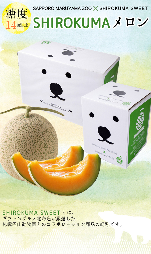 売り上げの一部は円山動物園へ寄付! 札幌円山動物園×SHIROKUMAメロン×ギフト&グルメ北海道のコラボメロンです! |