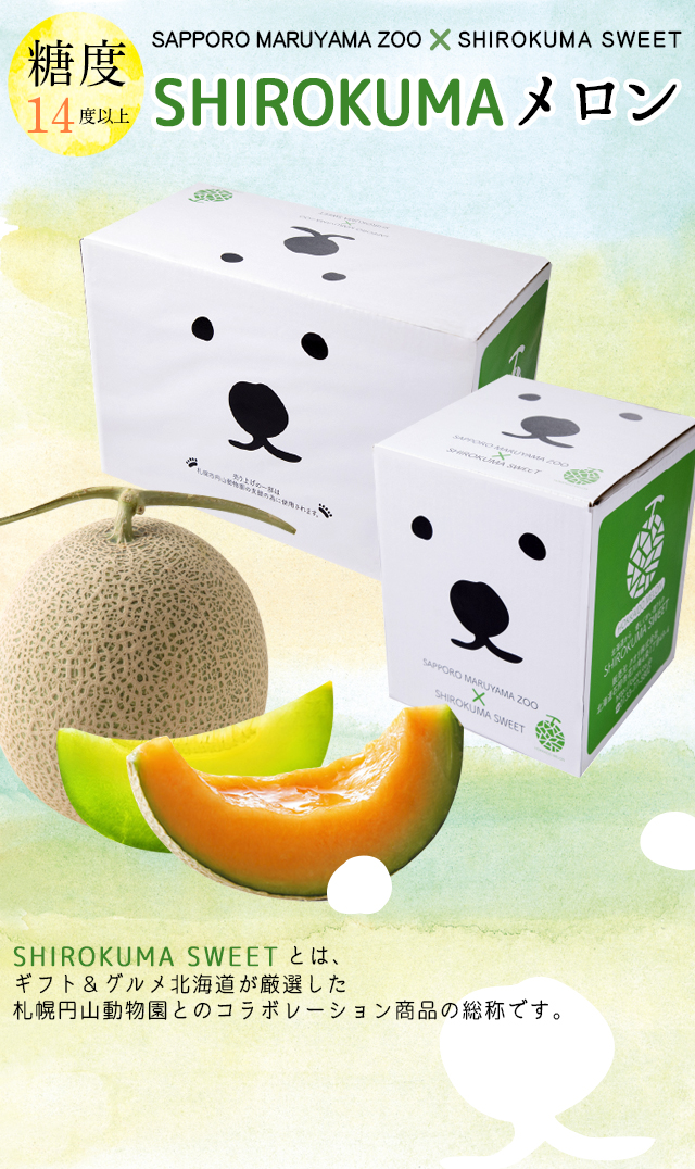 売り上げの一部は円山動物園へ寄付! 札幌円山動物園×SHIROKUMAメロン×ギフト&グルメ北海道のコラボメロンです! |