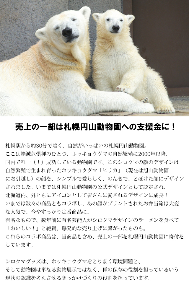 これらのコラボ商品は、当商品も含め、売上の一部を札幌円山動物園に寄付しています。
