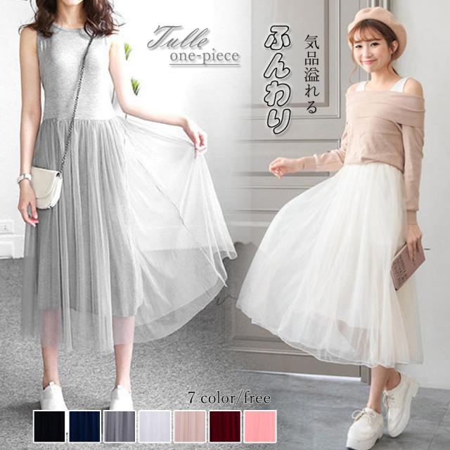 LAZA ペチコートワンピース レディース チュールワンピ ノースリーブ タックワンピース