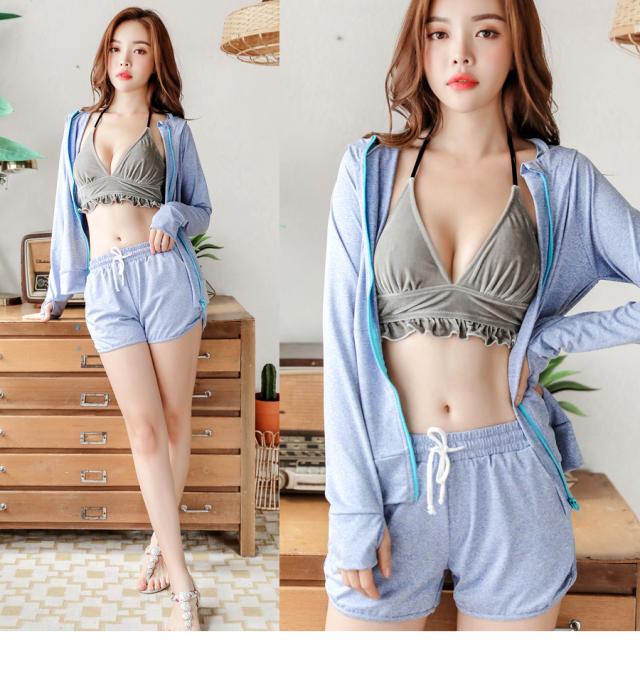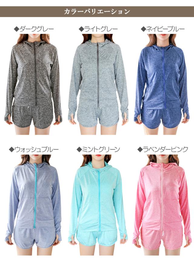 ラッシュガード レディース 上下セット 無地 ショーパン パーカー 紫外線 UVカット 日焼け対策 水着 速乾 ドライ フィットネス