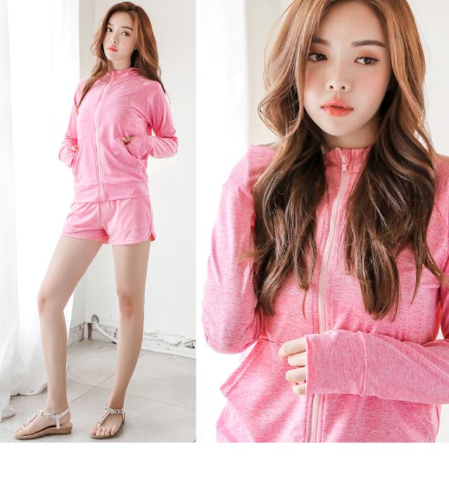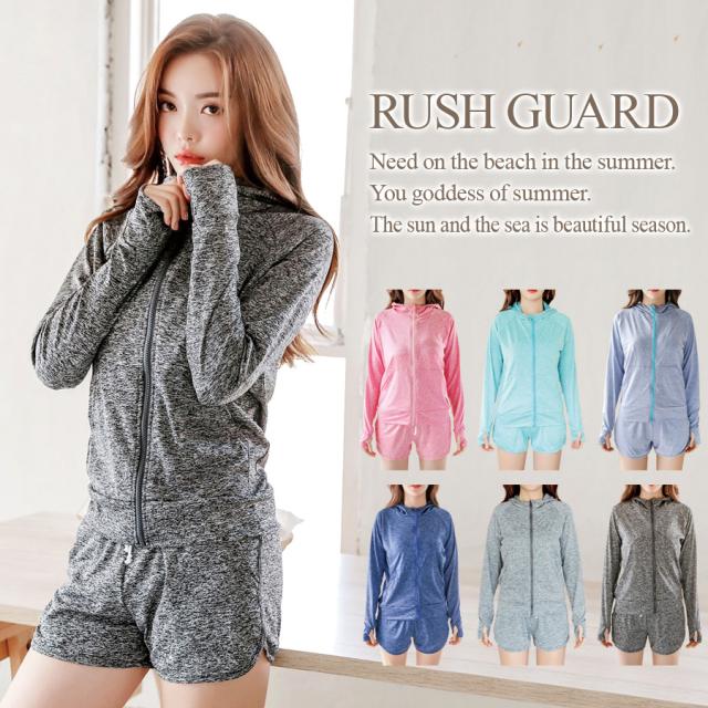 レディース 長袖ラッシュガード UVカット日焼け止めだけでは不安だから、ラッシュガードでしっかりUV対策☆ショートパンツと長袖パーカーのお得な2点setです♪速乾性でベタつかないから着心地もバツグン。塩素に強いポリウレタン糸を使用しているので、プールでも使用可能です♪指穴付きの袖口なので、手の甲もしっかりガードできます。露出の多いスイムウェアはイヤという人も安心! 気になる部分をしっかりカバーしてくれます。海に!プールに!リゾートに!夏フェスに!スポーツに!しっかり紫外線をカットして楽しくENJOY SUMMER!