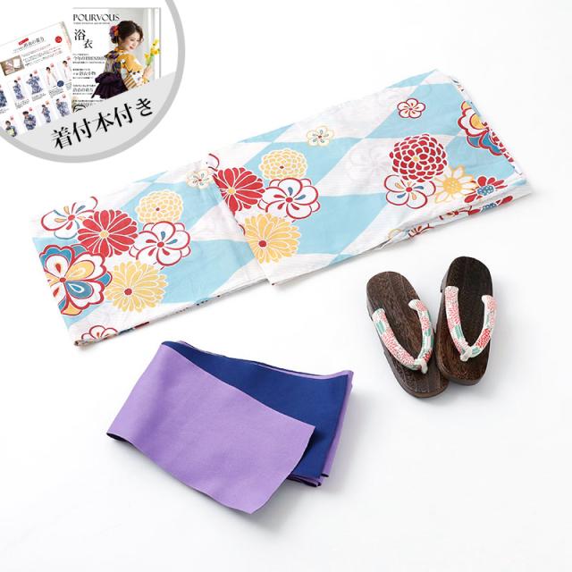 ◆4点セット(浴衣/着付け本/半巾帯/下駄)