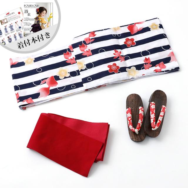 ◆4点セット(浴衣/着付け本/半巾帯/下駄)