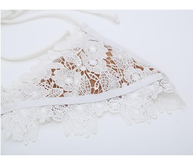 セクシー 水着 ビキニ ブラジリアン 2019新作水着 ホルターネック レース 3点セット シースルー 長袖カバーアップ ハイレグ パッド付き マイクロビキニ 紐 フリンジ スカラップ 花柄 20代 30代 40代 韓国ファッション 上品 おしゃれ キュート レディース