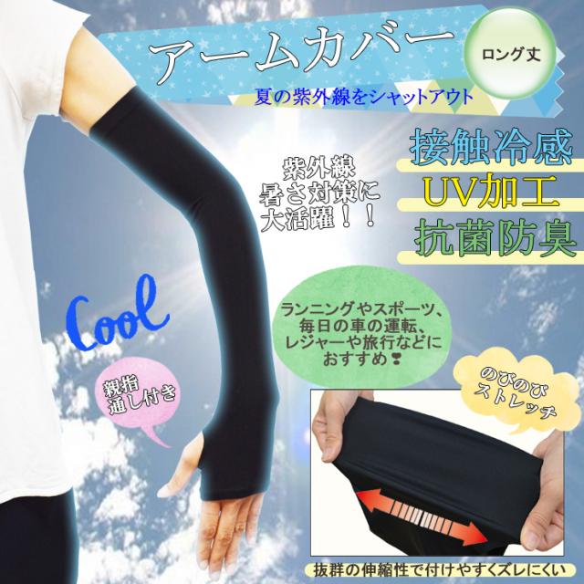 アームカバー レディース 冷感+UV(ロング丈 LA2)送料無料 アームカバー 冷感 接触冷感 クール 日焼け防止 uv アームカバー ロング 腕 アーム カバー クールアームカバー 抗菌 防臭 涼しい uv手袋 指なし uv手袋 涼しい 紫外線対策 グッズ 伸縮性(03123)