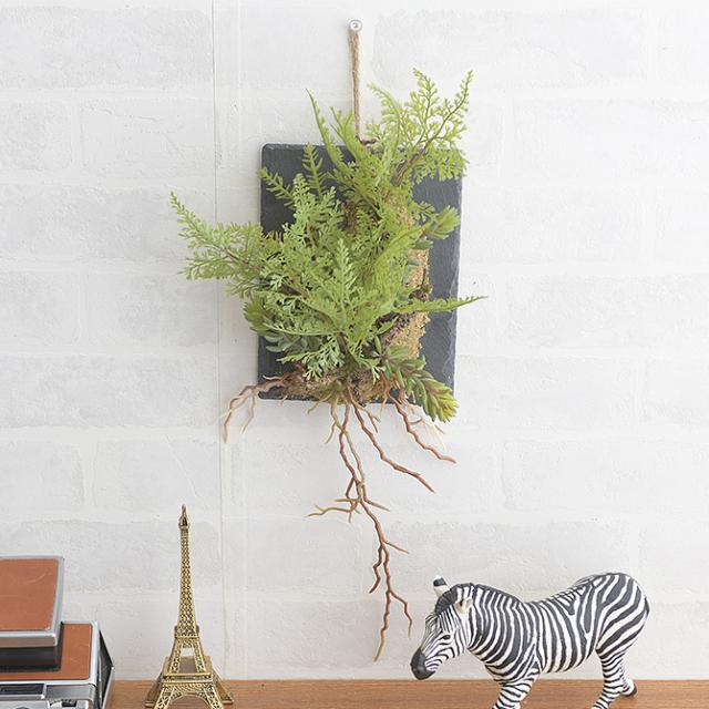 Brown. ブラウン フェイクグリーン ビカクシダ ウォールハンギング スレート 30 フェイクグリーン 壁掛け ハンギング おしゃれ 壁 グリーン インテリア 造花 植物 ペット