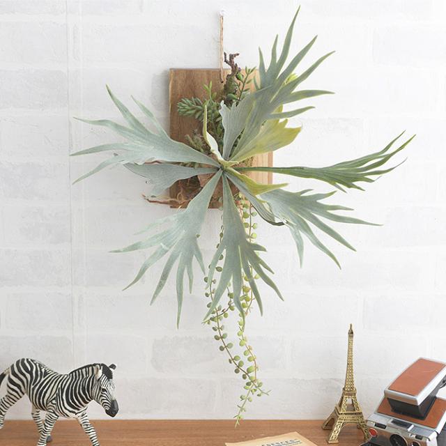アカシアボードとビカクシダを中心としたモチーフの組み合わせがおしゃれ。