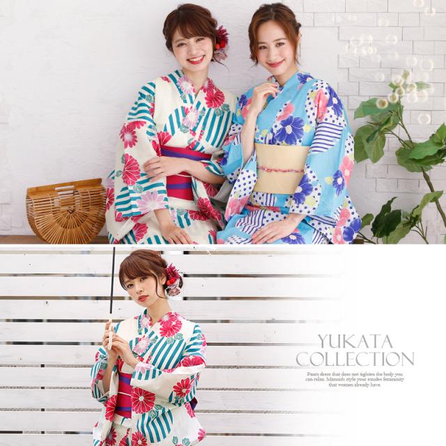 yu010 浴衣 レトロ レディース セット ゆかた 浴衣セット 女性 大人 花火大会 帯 夏祭り 女の子 菊 下駄 白 青 水色 白地 ブルー ピンク 古典 花 花柄 縞 梅 半幅帯 4点セット 20代 30代 お祭り 夏 花火 和服 4点セット浴衣 フリーサイズ 浴衣帯 同窓会 成人式 七五三 冬