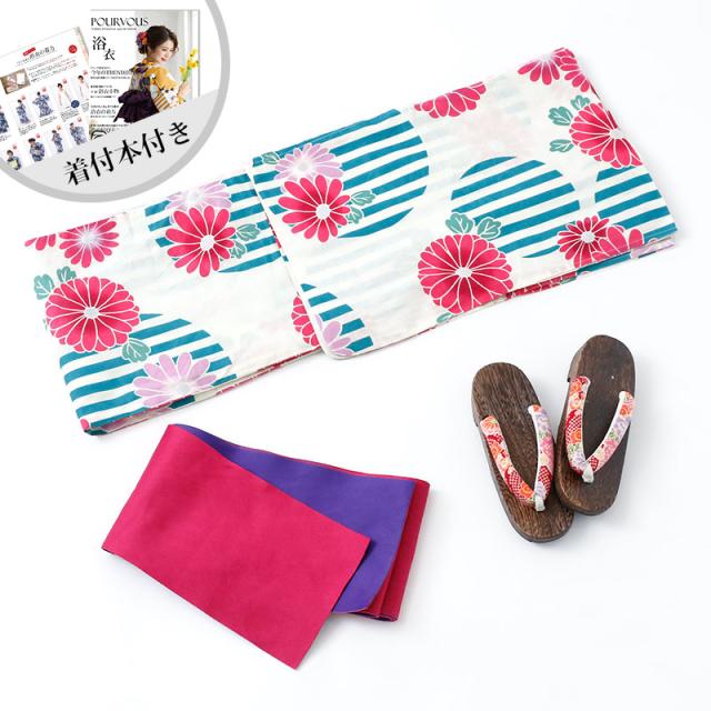 ◆4点セット(浴衣/着付け本/半巾帯/下駄)