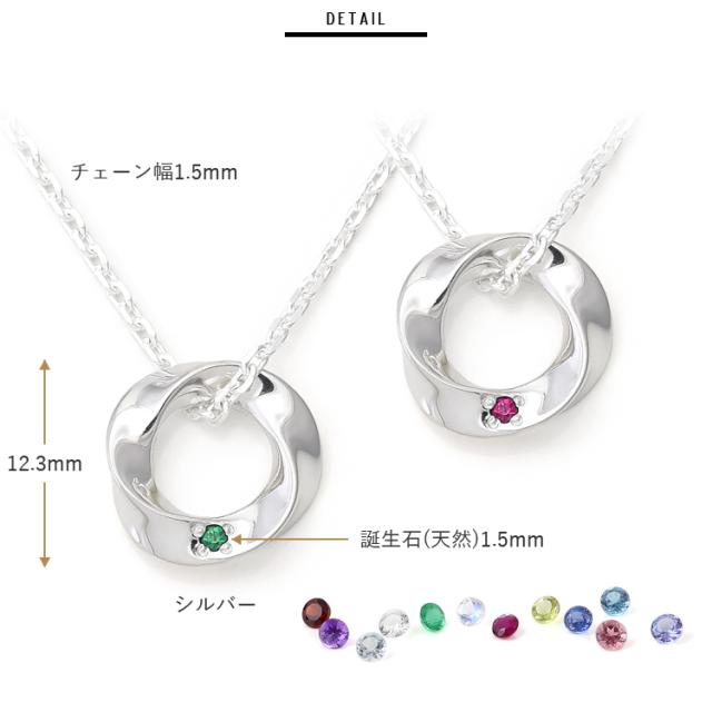 ペアネックレス 2本セット 選べる12誕生石 天然石 ガーネット アメジスト アクアマリン ダイヤモンド エメラルド ムーンストーン ルビー ペリドット サファイア ピンクトルマリン ブルートパーズ タンザナイト シルバー&シルバー ひねり ツイストリング シンプル 大人 おしゃれ ペア ペンダント (jln115sv_sv_pair)