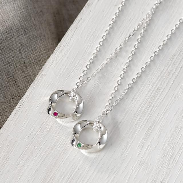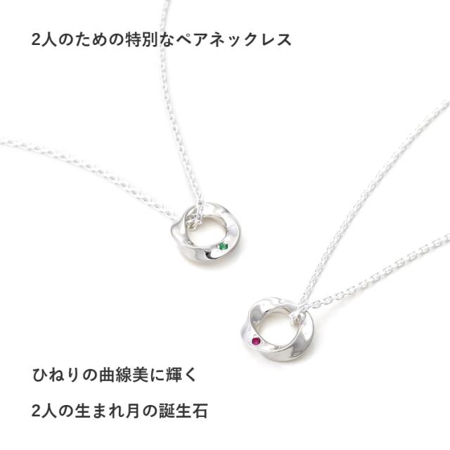 【送料無料】選べる誕生石12色 ペアネックレス シルバー&シルバー ひねりの曲線が美しいペアペンダント。ふたりの生まれ月の誕生石が特別感を演出。誕生日 記念日 ホワイトデー クリスマス 特別な贈り物にオススメです。