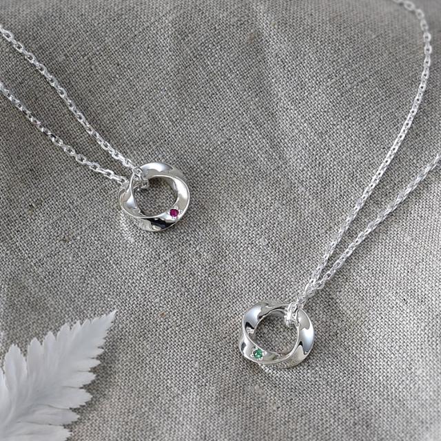 ふたりの誕生石を選んでセットできる、曲線美メビウスペアネックレス。