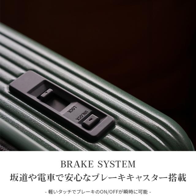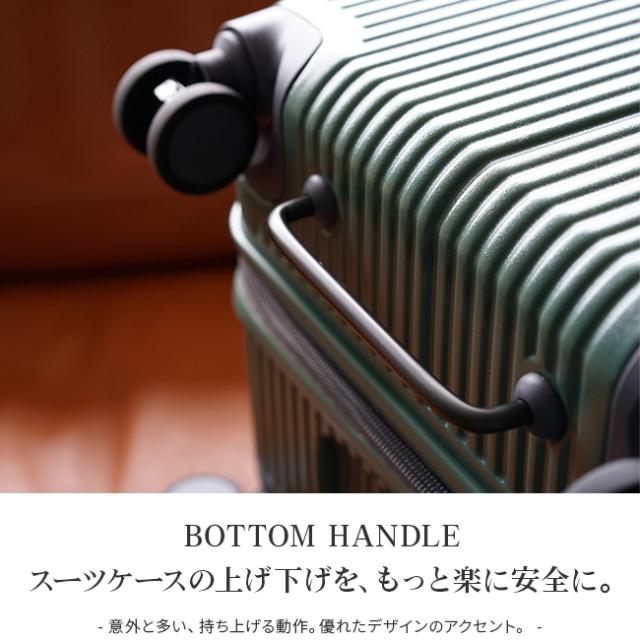 | スタイリッシュで印象的な深型デザイン。奥行きが深いボディにHINOMOTO製サイレントラン双輪キャスターを採用し、静かでありながら安定性抜群の走行を実現。さらに不用意な動きの防止に役立つキャスターストッパーも搭載。電車やバスの利用時にも安心感が違います。またアメリカ渡航にも安心のTSAダイヤルロックや、スーツケースの上げ下ろしに便利なボトムハンドルなど、旅を快適にサポートする機能が充実しています。 |