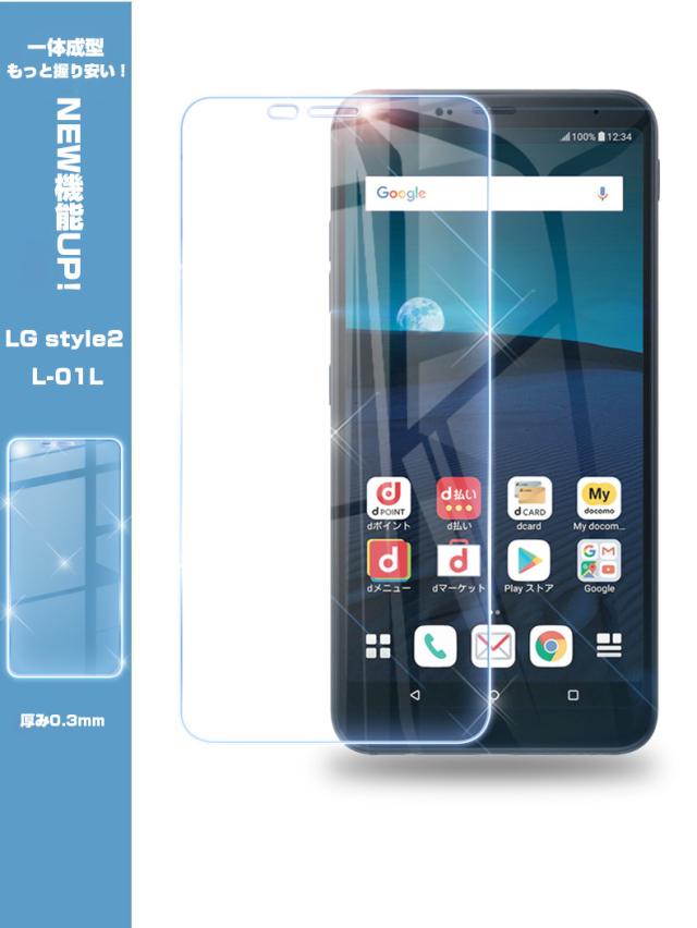 【2枚セット】docomo LG style2 L-01L 強化ガラス保護フィルム 液晶保護ガラスシート 画面保護 9H硬度 0.3mm極薄 気泡ゼロ 指紋防止