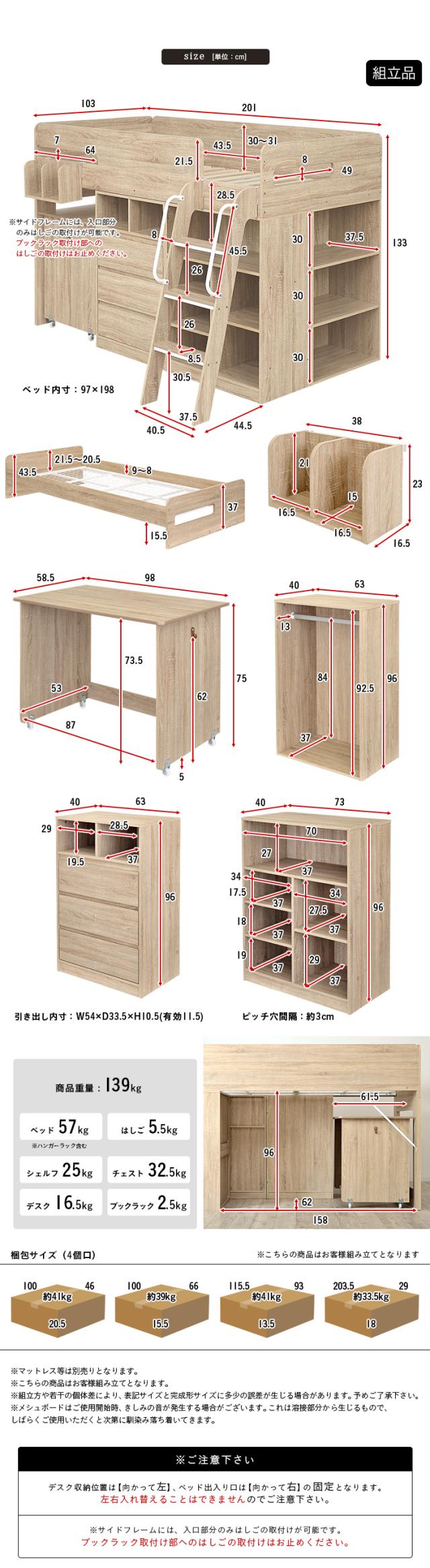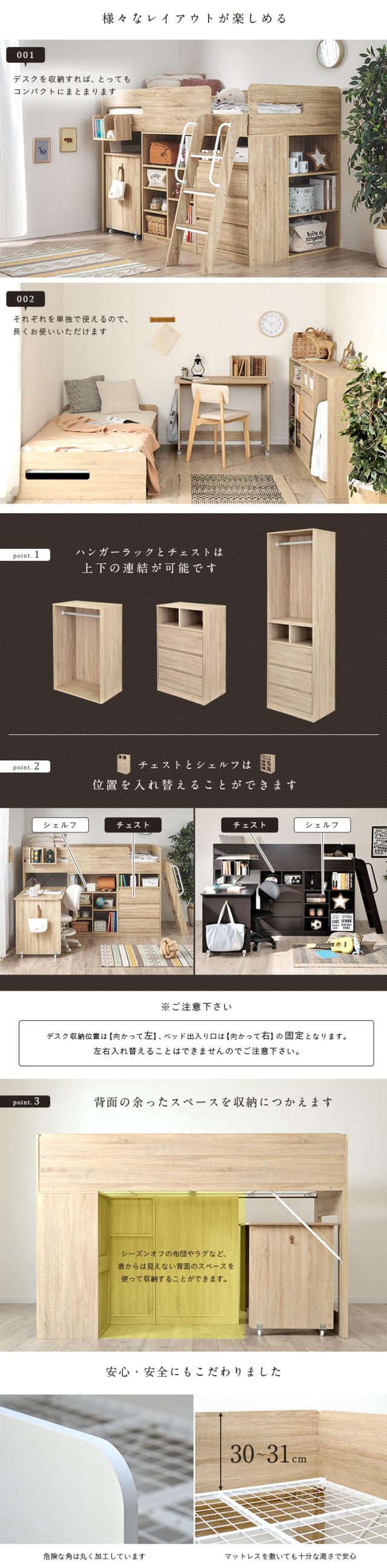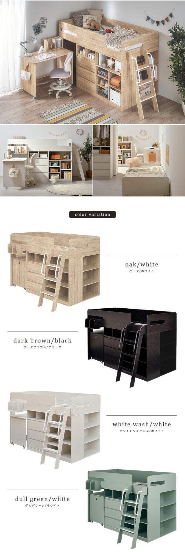 【充実の収納スペース】システムベッド ロフトベッド システムデスク システムベッドデスク デスクベッド ロータイプ ミドル ベッド 机付き 学習机 子供 ハンガーラック 本棚 収納 子供部屋 tale(テイル) 4色対応