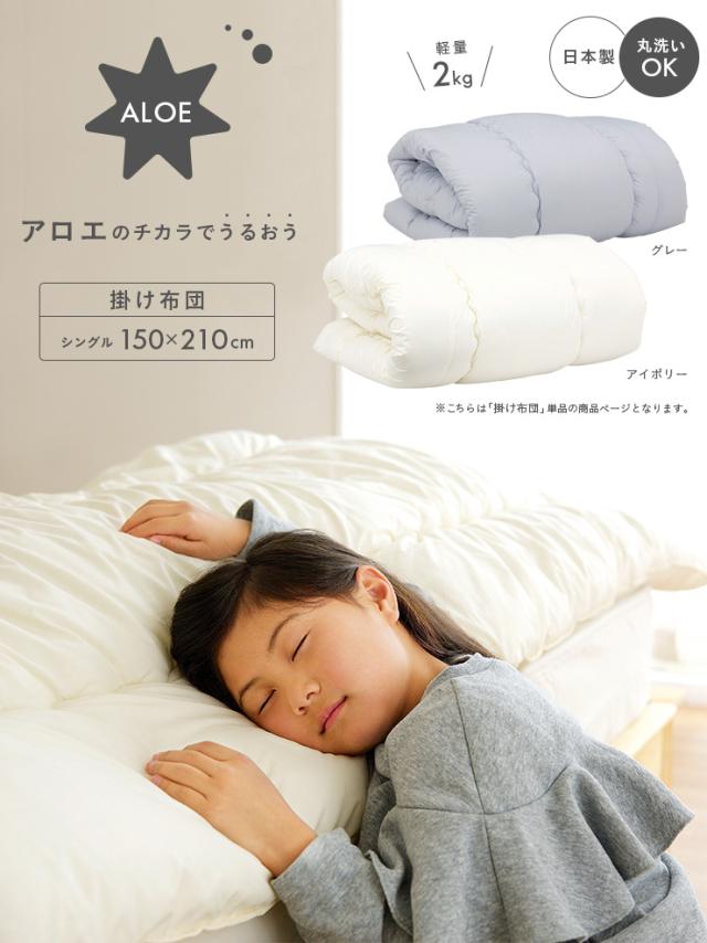 [2段、3段ベッドにぴったり/日本製/洗濯可能] アロエのチカラでうるおう 掛け布団 S シングルサイズ アイボリー/グレー 二段ベッド用 三段ベッド用 システムベッド用 布団 掛布団 シングル(S)