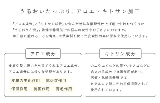 側生地:ポリエステル65%綿35% (アロエ・キトサン含有機能性仕上剤)