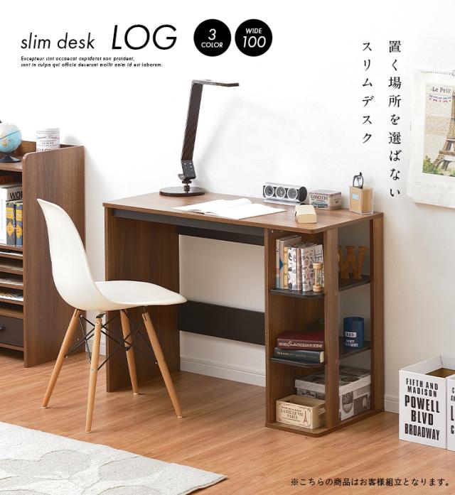 【ディスプレイにも収納にもなるラック付き】リビングデスク LOG(ログ) 幅100cm ブラウン/ホワイト/ナチュラル 学習机 学習デスク デスク パソコンデスク 子供部屋 リビング 子供 机 おしゃれ コンパクト シンプル