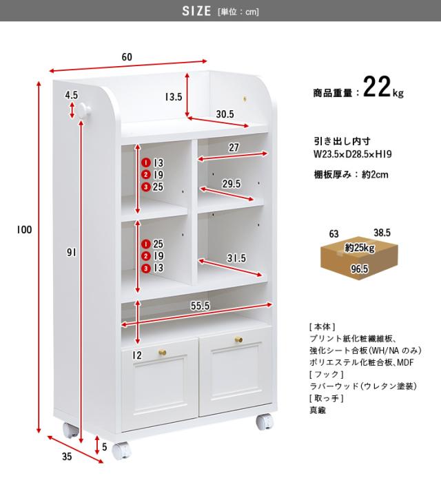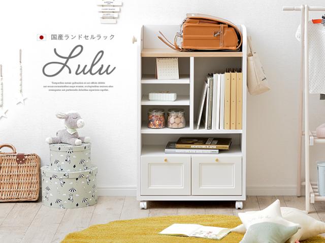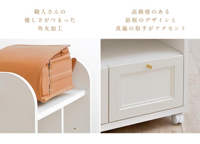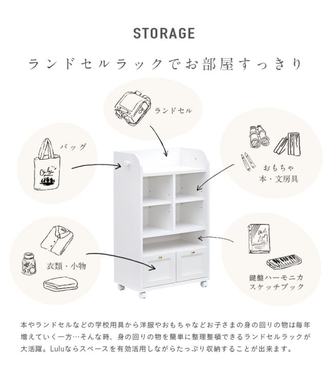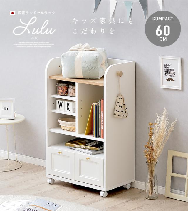 【国産/簡単組立/スリムタイプ】幅60cm ランドセルラック Lulu(ルル) キャスター付き 2色対応 スリム ホワイト おしゃれ ランドセル収納 子供部屋 リビングラック 引き出し リビング収納 女の子 木製 2人用 大容量