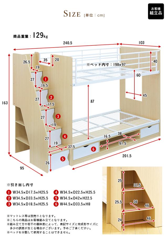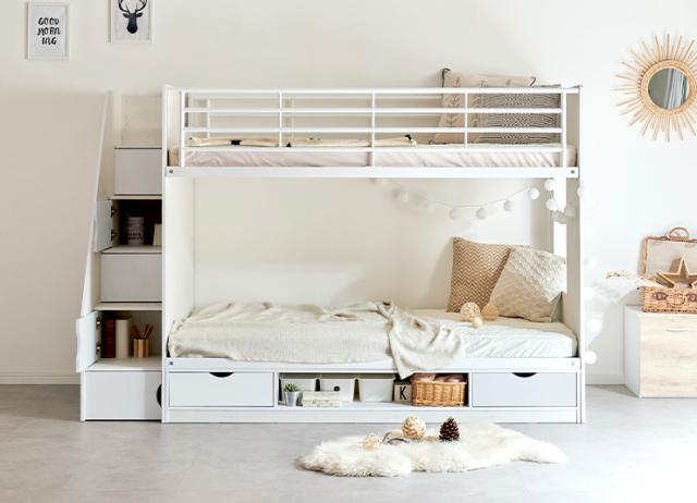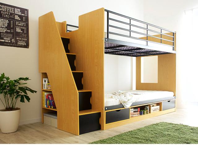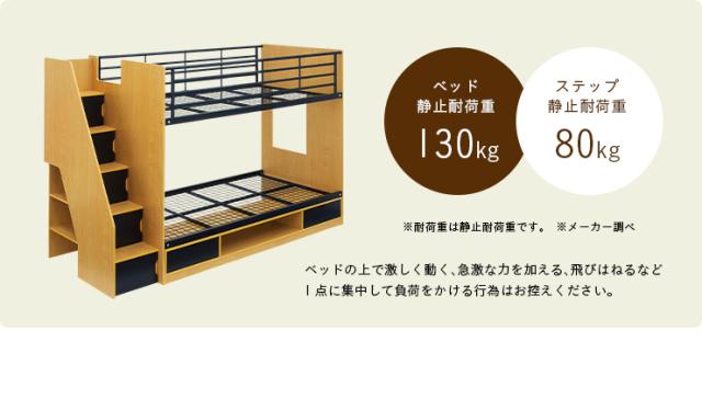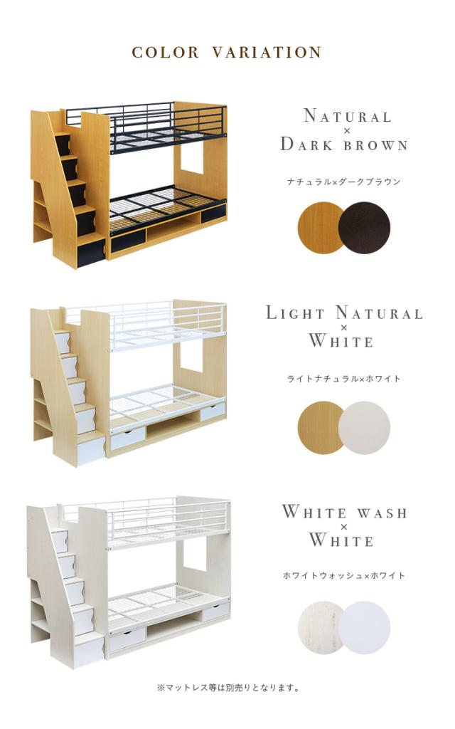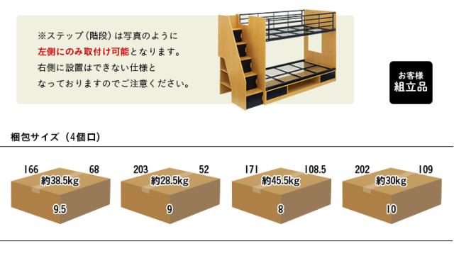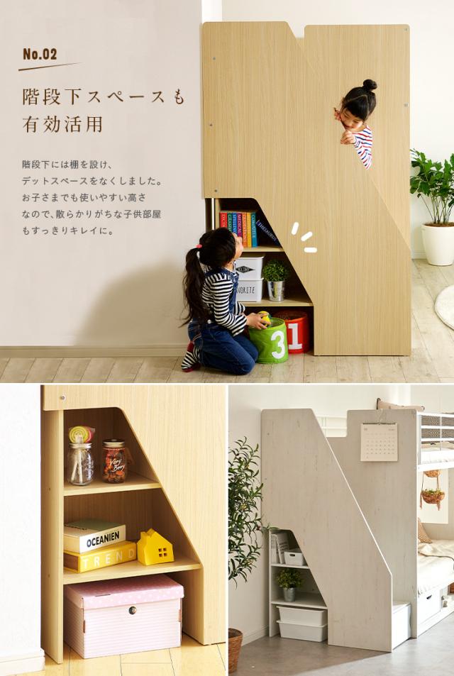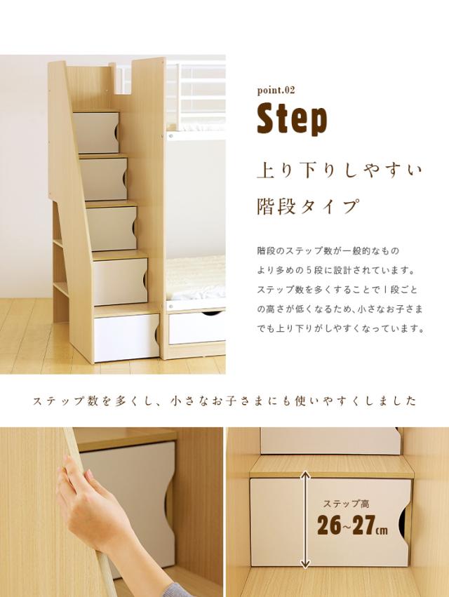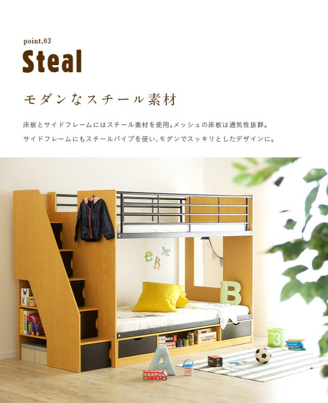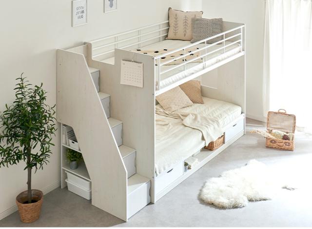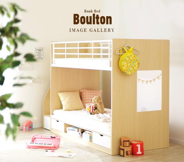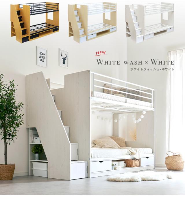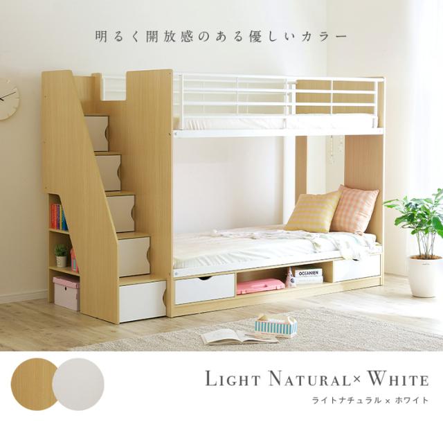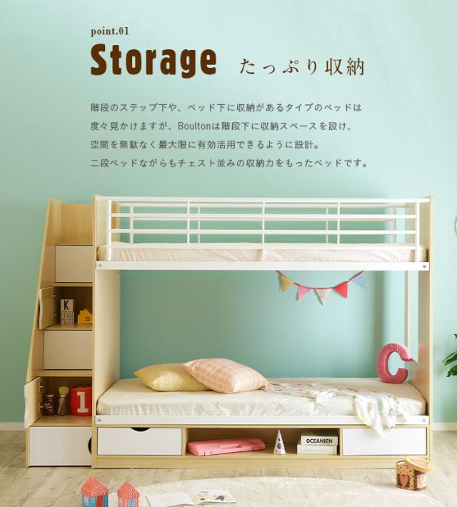【階段付き/大容量収納】二段ベッド 2段ベッド Boulton(ボルトン) 3色対応 二段ベット 2段ベット 子供用ベッド ベッド 子供部屋 階段 ナチュラル シンプル おしゃれ 木製 収納 スチール パイプ ホワイト