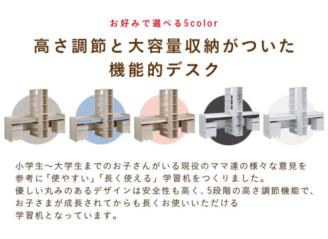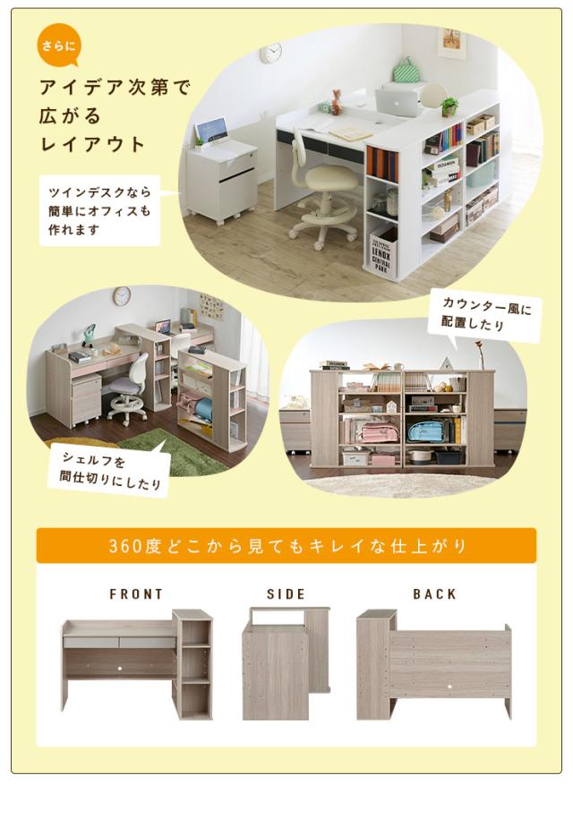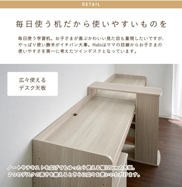 【大容量収納/高さ調節可能】ツインデスク 学習机 学習デスク Halo2(ハロ2) 5色対応 勉強机 勉強デスク 組み替え システムデスク 子供 大人用 兄弟 姉妹 二人 2人 木製 収納 おしゃれ 子供部屋