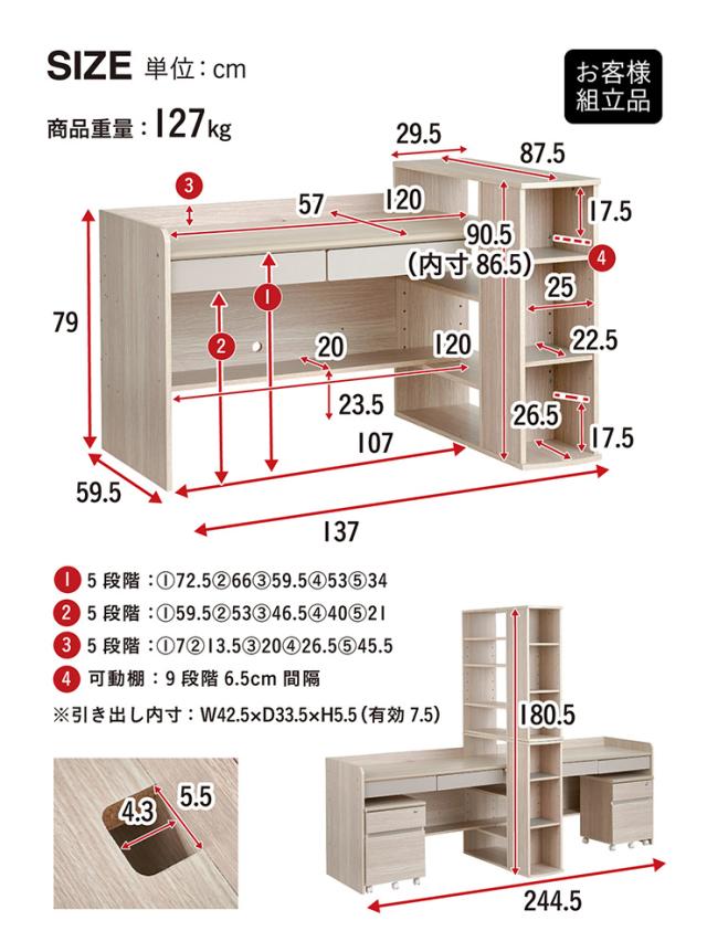 ツインデスク時:W244.5 x D87.5 x H180.5cm