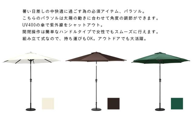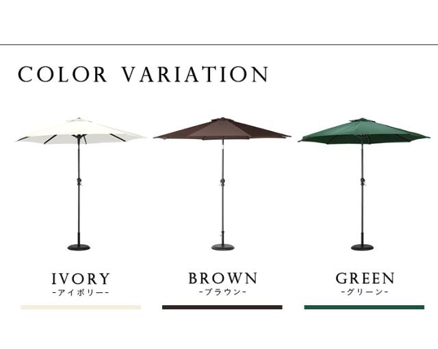 ガーデンパラソル ALUMI PARASOL(アルミパラソル) 270cm ベース無 グリーン/アイボリー/ブラウン アルミ 角度調節 ガーデン パラソル ガーデンファニチャー 屋外