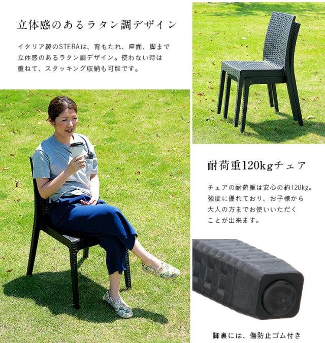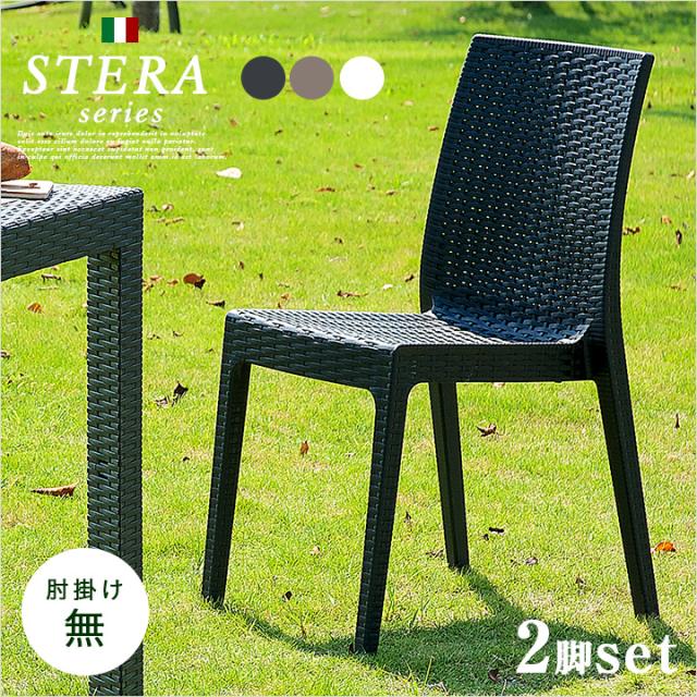 [イタリア製] ガーデンチェア 2脚セット STERA(ステラ) 肘掛け無 3色対応 ガーデン チェア チェアー ガーデンチェアー 椅子 ガーデンファニチャー ダイニングチェア ダイニング 屋外 プラスチック (大型)