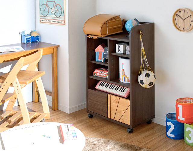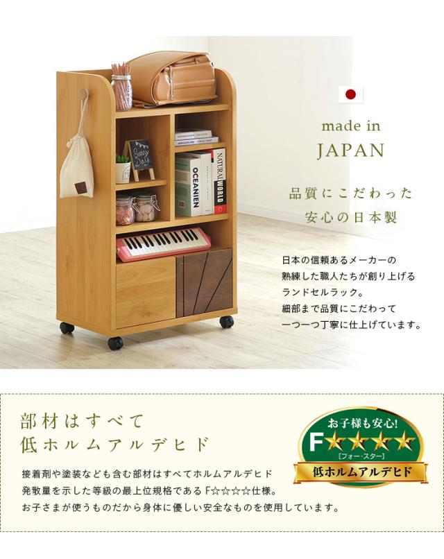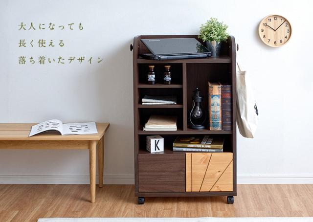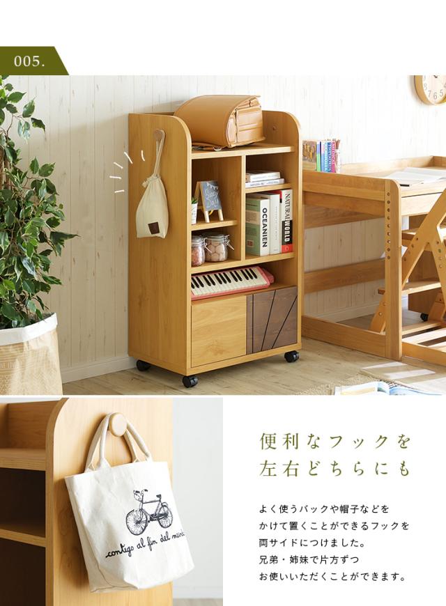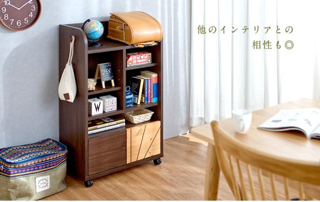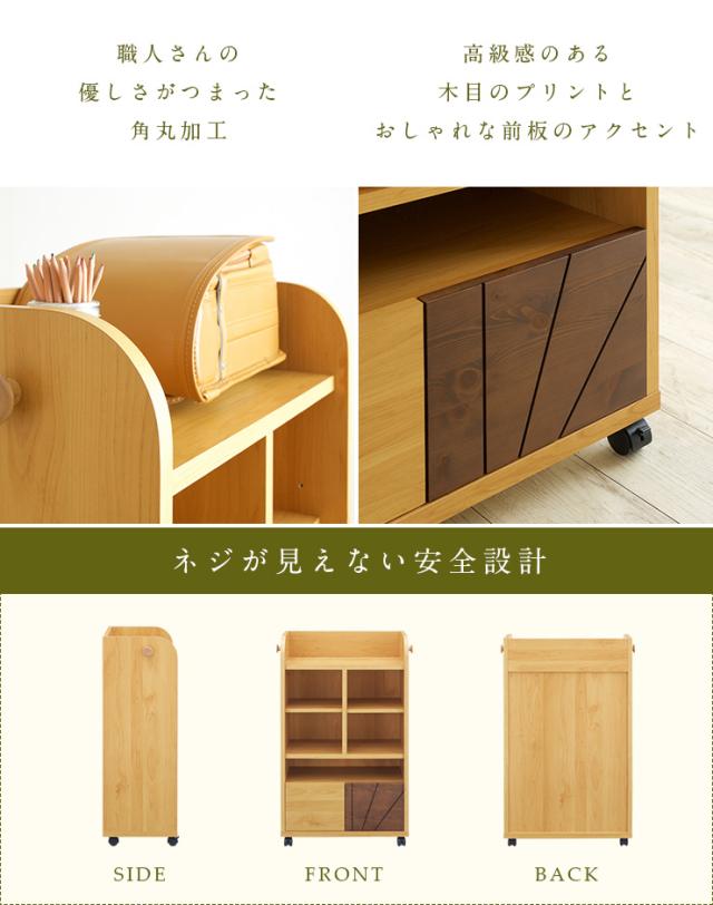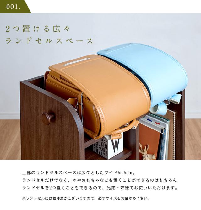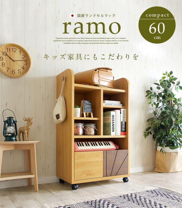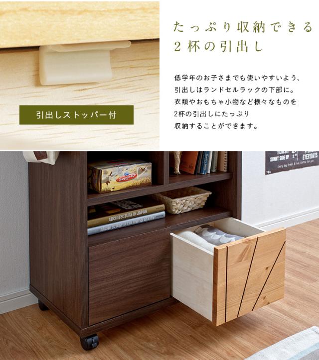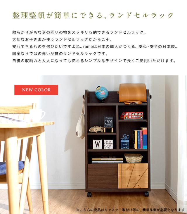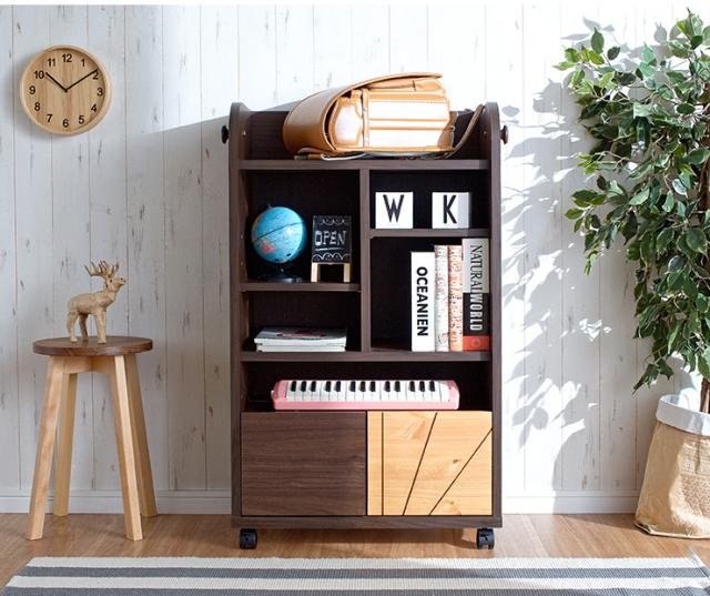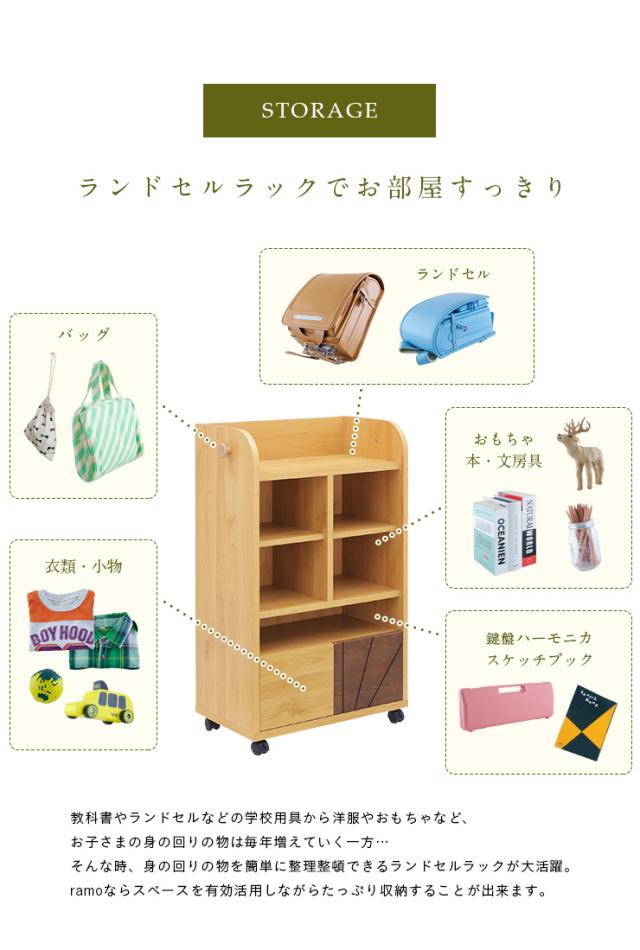 【国産/簡単組立/スリムタイプ】幅60cm ランドセルラック ramo(ラーモ) キャスター付き ナチュラル/ダークブラウン ラック おしゃれ 子供部屋 引き出し 本棚 男の子 女の子 子供用 木製 日本製 2人用 大容量