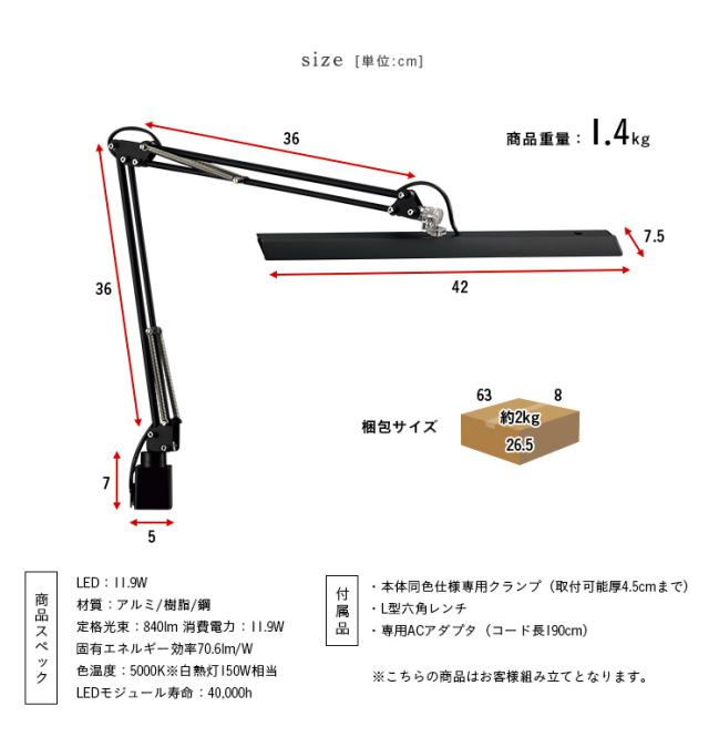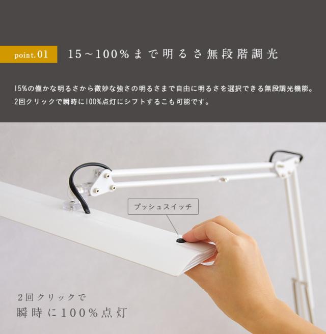 [無段階調光/角度調整機能] Z-light クランプ式 LDE デスクライト Z-10R ブラック/ホワイト/シルバー 目に優しい アーム デスクライト 学習デスク用 学習机用 パソコンデスク用 デスク照明 オフィスデスク用