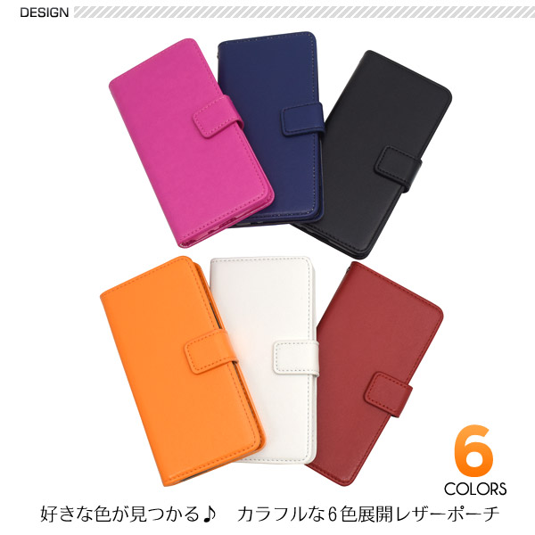 カラフルな6色展開のカラーレザー手帳型ケース。衝撃やキズなどから守ります。また、内部はソフトケースなので着脱が簡単です。背面を折り返すとスタンドとして使用できるので、動画視聴に便利です。落下防止に最適なストラップとストラップホール付きです。横開きタイプなので、手帳のように使うことができます。また、内側に3つのカードポケットとサイドポケットが付いています。※スマートフォンは付属しません。※ライセンス商品ではありません ※カードは付属しません。 ※ケースをつけたまま撮影できますが、フラッシュ撮影時にケースの色が移り込むことがあります。