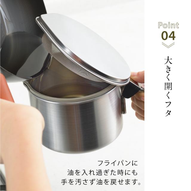 燕三条,ステンレス,オイルポット,油こし器,油こし,油ポット,油,ろ過,揚げ物,ミニ,小さい,小さめ,ミニサイズ,コンパクト,再利用,節約,日本製,高級,高級感,調理器具,調理道具,キッチンツール,キッチン,台所,調理,料理,家事,キッチン用品,キッチン雑貨,台所用品,キッチンアイテム,キッチングッズ,時短,アイデア,便利グッズ,おすすめ,オススメ,人気,清潔,衛生的,汚れが落ちやすい,洗いやすい,乾きやすい,錆びにくい,サビにくい,丈夫,上質,高品質