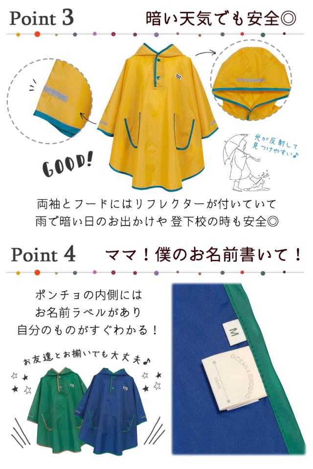 オーシャンアンドグラウンド レインポンチョ キッズ 男の子 ランドセル対応 80 90 100 110 120 130 《レビュー記入でメール便無料》 かっぱ レイン 雨具 子供 ユニセックス 女の子 無地 ポケット 袋付き アウトドア 膝丈 おしゃれ : Ocean & Ground 4414701