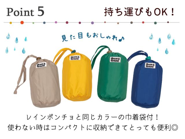 - オーシャンアンドグラウンドのレインポンチョはどれも可愛くて憧れです! 5歳の息子に「ブラック」のストライプ柄を。 定価で送料も無料なのでこちらで購入しました。 買ったその日に発送、翌日にはポストに届い...