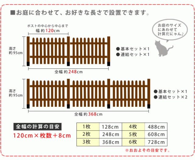 ガーデンフェンス ウッドフェンス ピケットフェンス ストレート 土中用 連結セット 木製