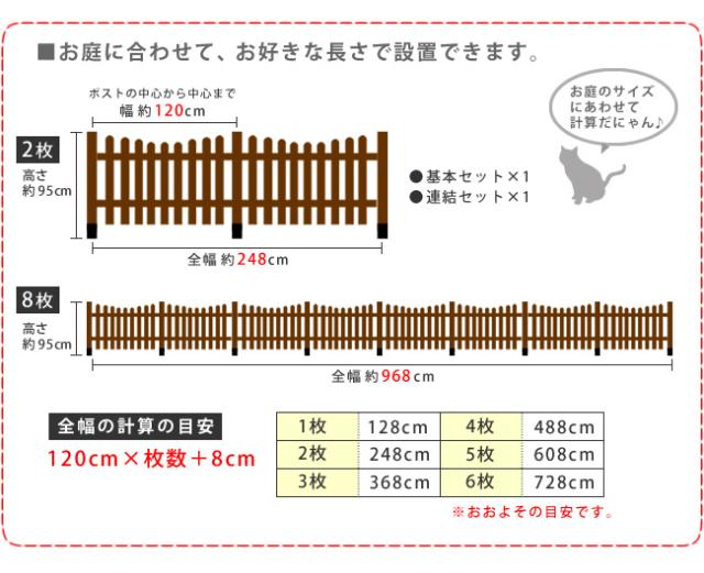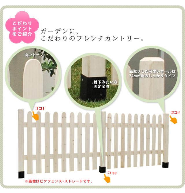 ガーデンフェンス ウッドフェンス ピケットフェンス U型 土中用 8連結セット 木製