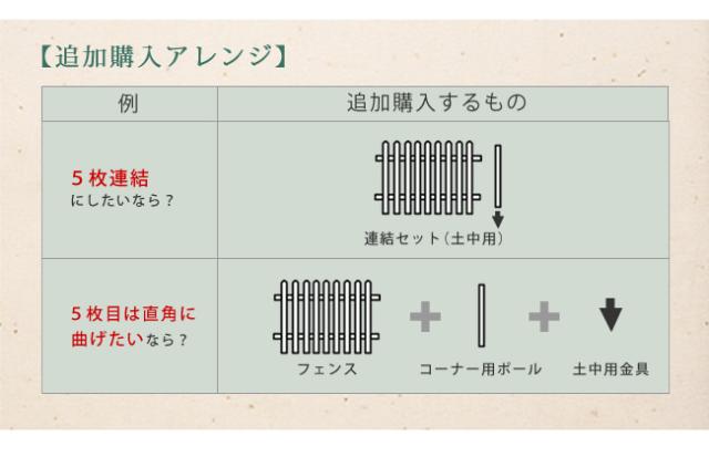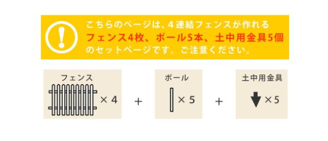 | ■商品名 | ピケットフェンス ストレート4連結セット(土中用) ・フェンス…4枚 ・ポール…5本 ・土中用金具…5個 |