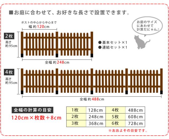 ガーデンフェンス ウッドフェンス ピケットフェンス ストレート 土中用 4連結セット 木製