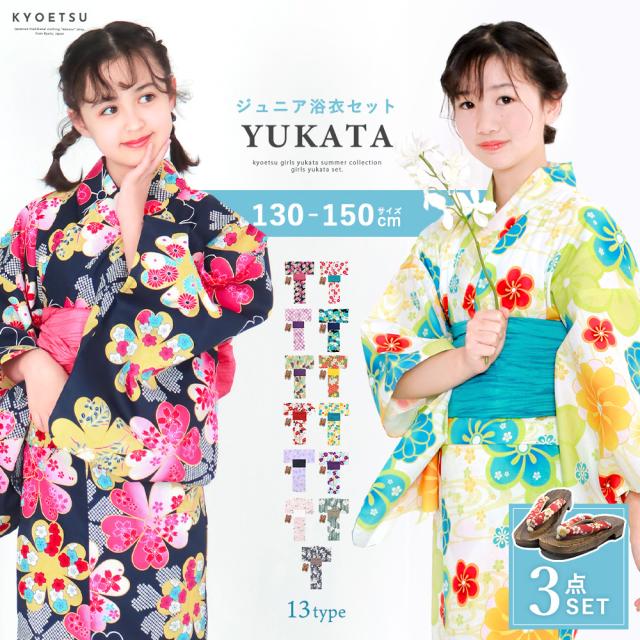 浴衣 子供 セット 女の子 【 浴衣3点セットレトロ B】 ガールズ 浴衣セット 兵児帯 下駄 子ども yukata ゆかた ユカタ セット ジュニア キッズ レトロ おしゃれ 可愛い 中学生 小学生 13colors 130 140 150 夏祭り 花火大会(rg)