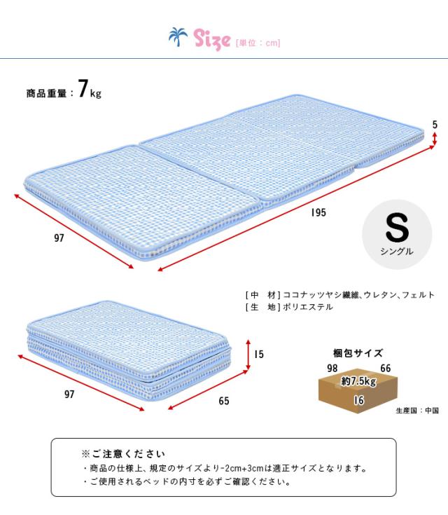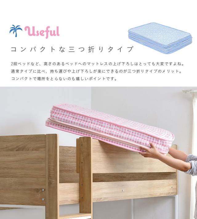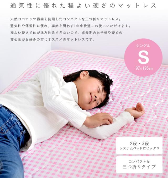 2段・3段・システムベッド用マットレス 三つ折り ココナッツパームマットレス am(アム) S 97x195cm シングル 二段ベッド用 三段ベッド用 システムベッド用 ロフトベッド用 シングルベッド用 シングル (S)