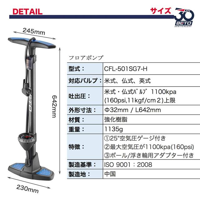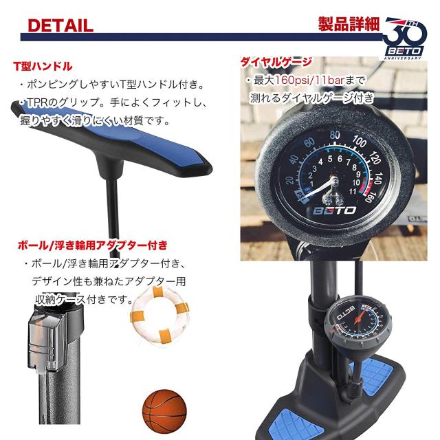 ベト(BETO)手動 空気入れ 仏式 米式 英式 フロアポンプ エアゲージ装備 浮き輪/ボールアダプター付き 1100kPa CFL-501SG7-H