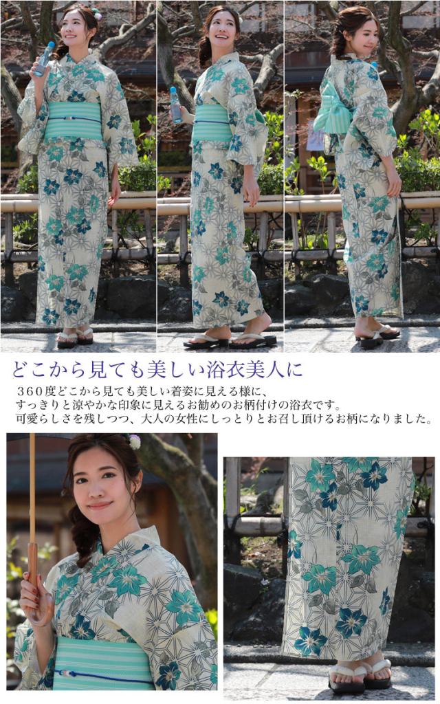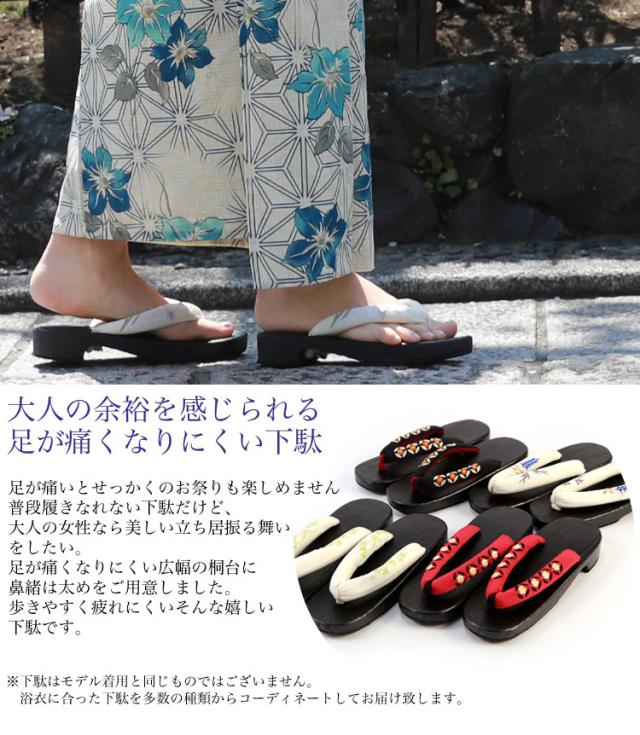 | 備考 | ※浴衣の柄の配置はモデル着用とまったく同じではございません。予めご了承下さいませ。 ※下駄は当店がコーディネートしてお選びさせて頂きます。 | |||