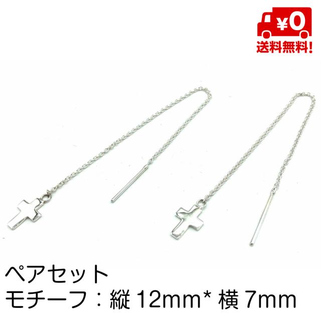 シルバー925 ペア ピアス シンプル チェーンピアス クロス 横幅太め 十字架 レディース おしゃれ スターリングシルバー silver925 18G 送料無料