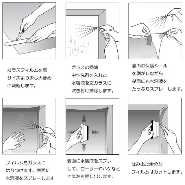 3.ガラス面と断熱フィルムに水をまんべんなく吹き付けます。