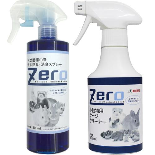 【セット販売】Zero 天然酵素由来強力防臭・消臭スプレー 300ml+Zero 小動物用ケージクリーナー 300ml