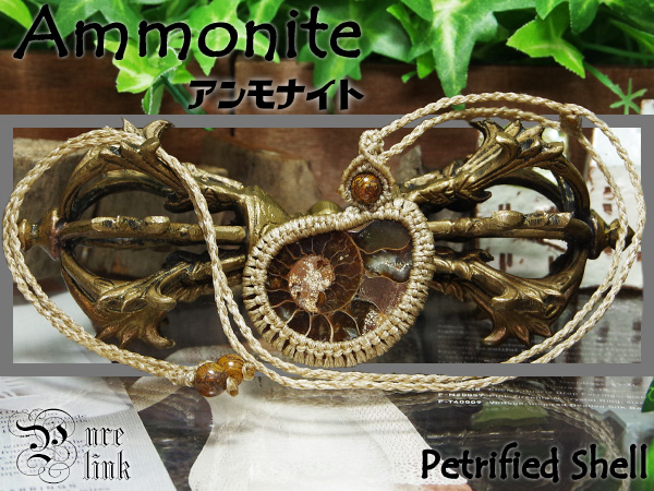 太古生命の力が宿る『アンモナイト』『エレファントスキン』マクラメ編みネックレス