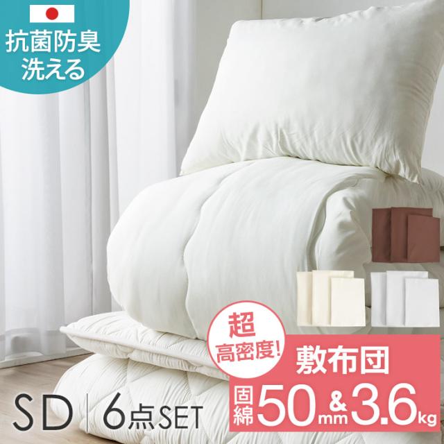 布団セット セミダブル 6点セット 布団 日本製 抗菌 防臭 清潔 国産 洗える 各カバー付 組布団 掛布団 固綿入り 敷布団 掛け布団 ふとんセット 敷き布団 枕 セミダブルサイズ 掛け敷き布団セット 新生活 寝具セット