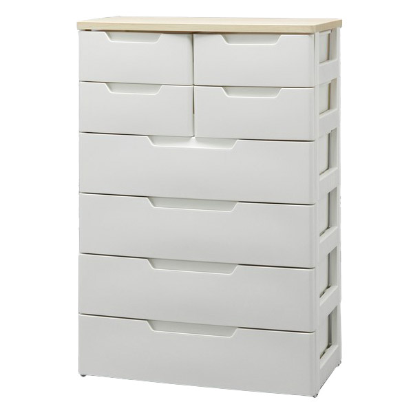 材質:天板/合成樹脂化粧繊維板(塩化ビニル樹脂・MDF)、引出・フレーム/ポリプロピレン、前パネル/スチロール樹脂、レール/スチール