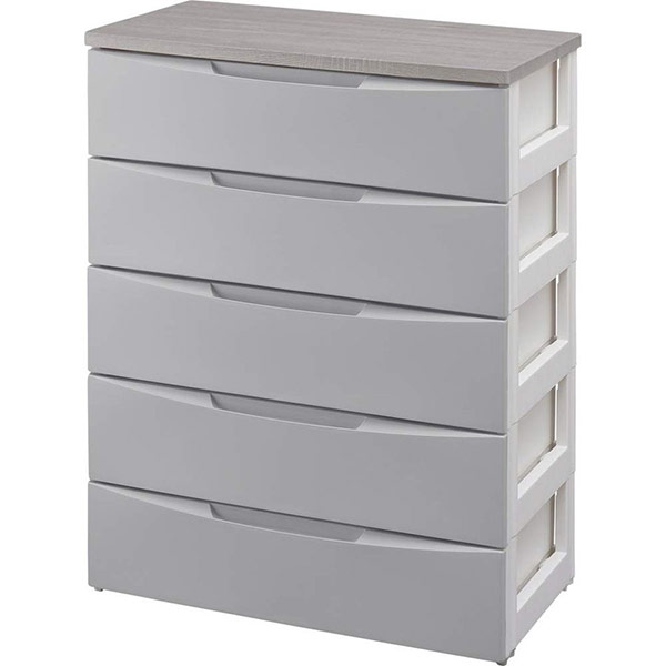 直送 日時指定不可 アイリスオーヤマ デザインウッドトップチェスト 幅73cm 5段 グレー DW-725 沖縄・離島配送不可